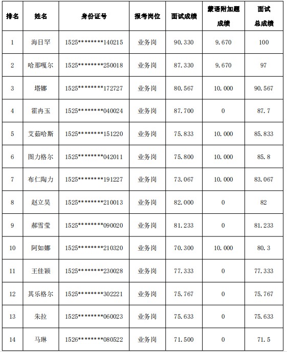東烏珠穆沁旗農(nóng)村信用合作聯(lián)社 2019-2020 年應(yīng)屆高校畢業(yè)生 校園招聘考試面試成績公示新聞動態(tài)當(dāng)前位置