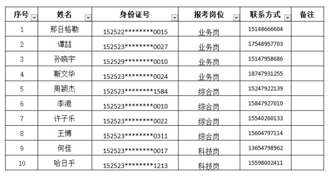 蘇尼特左旗農(nóng)村信用合作聯(lián)社2020年度校園招聘考試面試入圍名單
